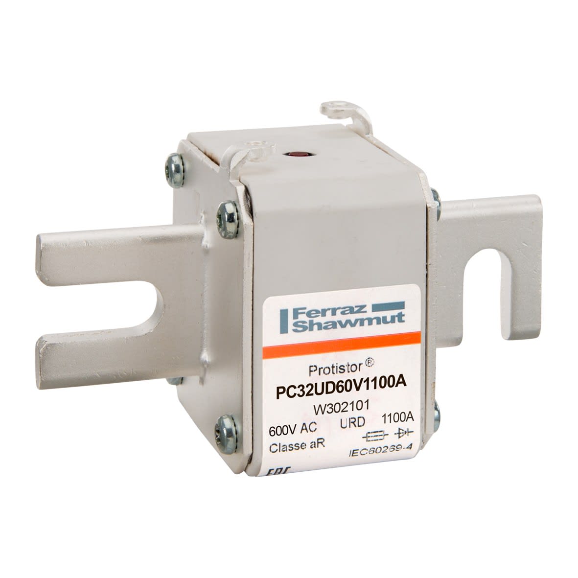 Mersen - Fusible ultra rapide 32 aR 600VAC 1100A Percuteur Couteaux DIN 80 - W302101
