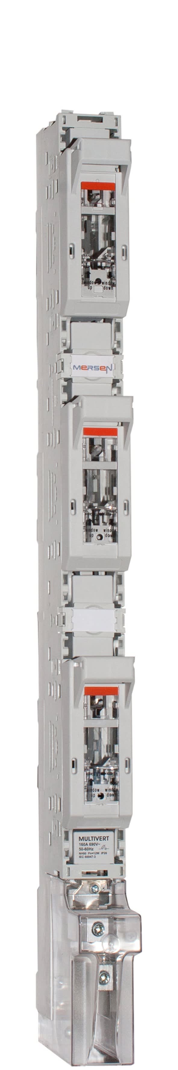 Les fusibles-interrupteurs-sectionneurs verticaux MULTIVERT® NH assurent toutes les fonctions des fusibles-interrupteurs-sectionneurs NH. Ils sont conçus pour une installation sur busbars en versions tripolaires.Les interrupteurs modèles MULTIVERT® 160 A 185 mm à commutation unipolaire sont destinés à l'installation sur des systèmes de busbars 185 mm.Les modèles MULTIVERT® 160 A sont conçus pour les fusibles NH selon CEI/EN 60269-2, VDE 0636-2, taille 00 : 160A.Le système est un système modulaire qui permet l'installation de composants séparés. MULTIVERT® offre à l'utilisateur la possibilité d'une installation rapide et facile et un haut degré de protection au cours de l'installation et de la maintenance.
