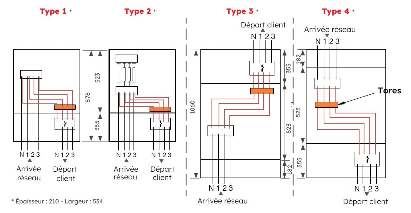 Coffret Branchement Puissance Surveillée type 1 (arrivée et départ bas) 200 ou 400A, sans protection amont.