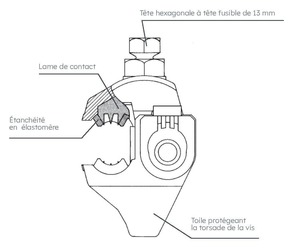 Connecteur à perforation d'isolant pour branchement en réseau aérien BT en conducteurs isolés torsadés. Type CBS/CT-25