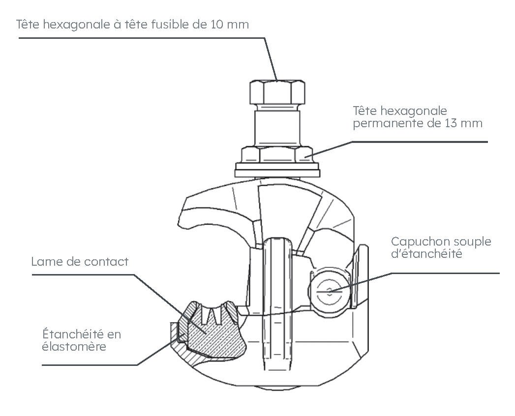 Connecteur à perforation d'isolant pour éclairage public sur réseau aérien BT en conducteurs isolés torsadés. Type CES/CT-70