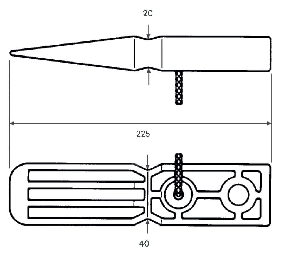 Ecarteur à coins constitué de 2 coins reliés par un cordon de longueur 1 m permettant de séparer des conducteurs de torsade de réseau aérien ou dans un câble souterrain.