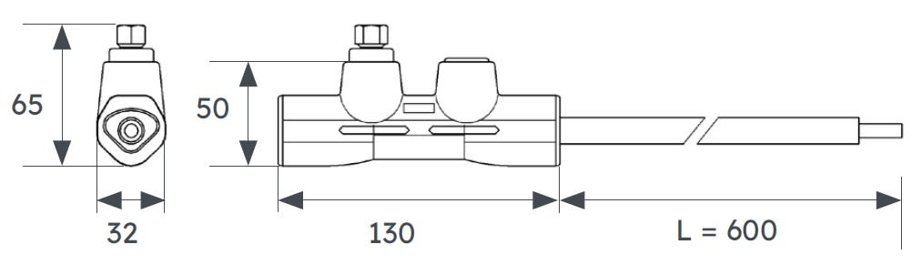 Embout réducteur à dénudage avec serrage par vis. Capacité d'arrivée de 25² à 95². Section du fouet : 25²