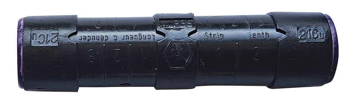 Manchon de jonction préisolé à sertir pour le raccordement des câbles de branchement souterrain BT. Type MJPBS 21Cu-21Cu