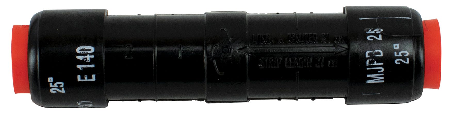 Manchon de jonction préisolé pour branchements aériens BT en conducteurs isolés Type MJPB 25. Section de câble d'arrivée 25 mm² - Section de câble de départ 25 mm²
