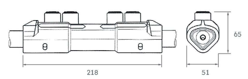 Manchon préisolé de réseau à serrage mécanique pour conducteurs sectoraux souterrains ou aériens ronds. Section du câble d'arrivée : 50 à 240². Section du câble de départ : 50 à 240²