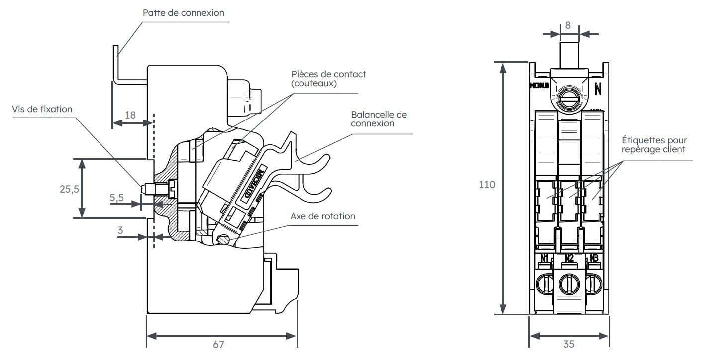 Ce produit s'utilise en lieu et place des anciens neutres triples et permet le sectionnement des neutres conformément à la norme NF C14-100.