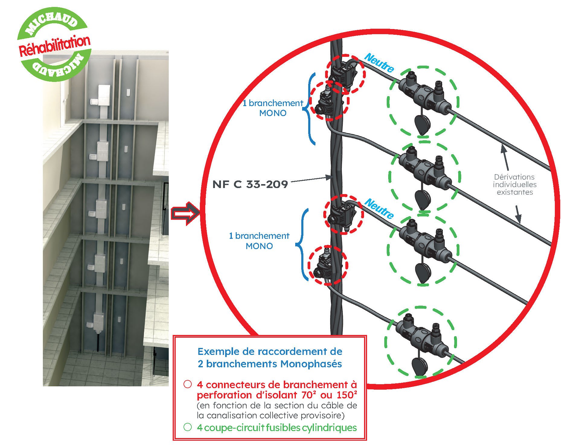 Michaud - Pack colonne provisoire 1 TRI ou 2 MONO 35²-70² - K550