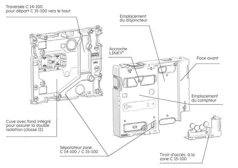 Panneau de contrôle monophasé destiné à la pose d'un compteur LINKY et/ou d'un disjoncteur de branchement. Modèle faible profondeur.