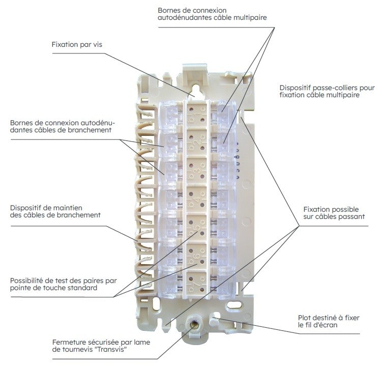 Le PDI Q250 est agréé Orange. Il est compatible haut débit et contient 7 départs clients tout en restant de faible épaisseur (23 mm).
