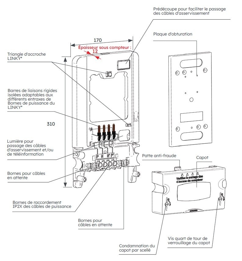 Tableau 170 x 310 destiné au remplacement rapide d'un compteur triphasé électronique ou électromécanique par un compteur LINKY bornes basses.