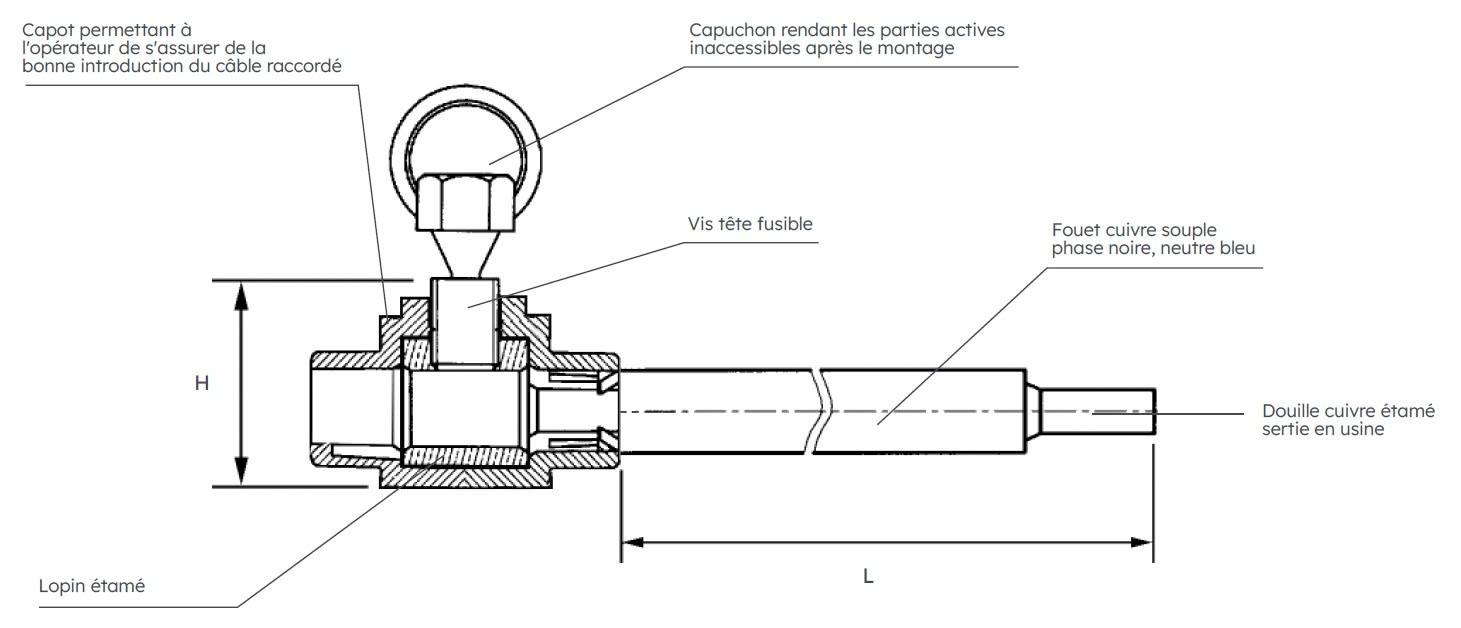 Embout doté d'un fouet souple pour une mise en oeuvre facilitée.