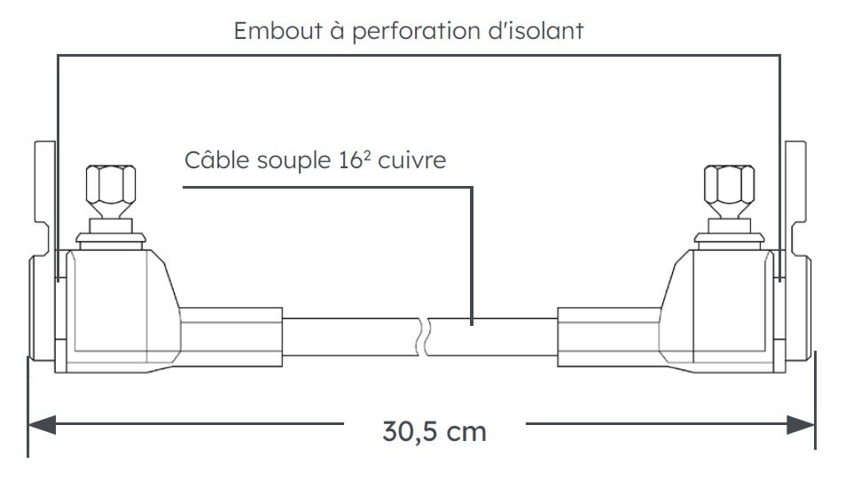 Trousse de 2 câblettes souples de liaison 16² (1 bleue et 3 noires) équipées d'embouts à perforation d'isolant à chaque extrémité