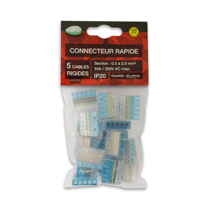 Miidex Lighting - CONNECT RAPIDE 5 FILS RIGIDE POLYBAG PACK DE 20 - 72221