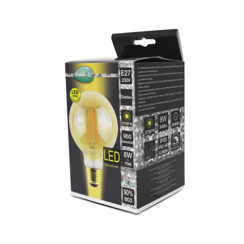 LED FIL COB GLOBE G95 E27 8W 2700K GOLDEN BOITE