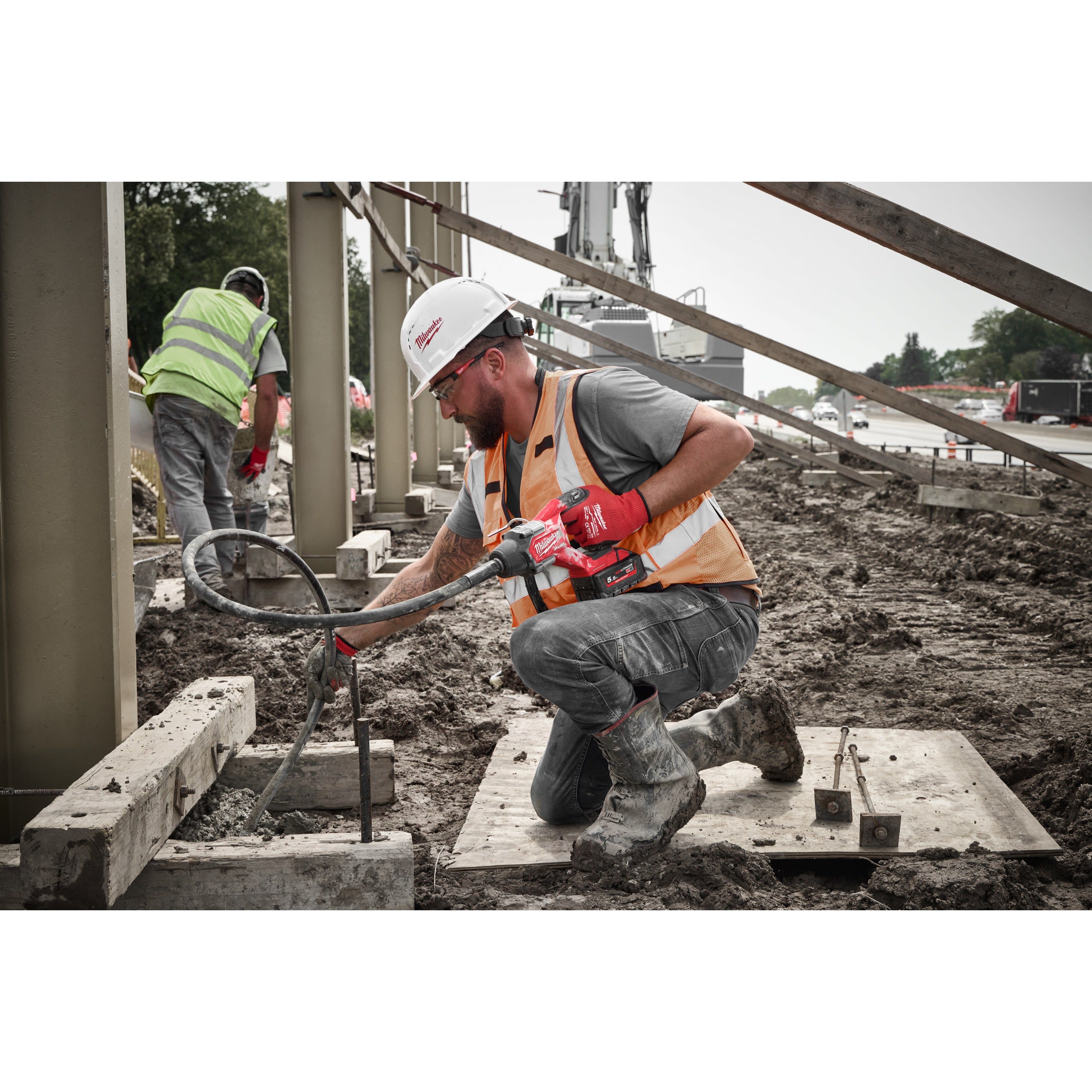 M18 FUEL™ Aiguille vibrante pour un compactage efficace du béton dans toutes les formes de coffrage Un arbre flexible de 1.2m de longueur est recommandé pour les semelles filantes de fondation et les dalles en béton (M18 FCVN12) Un arbre flexible de 2.4 m