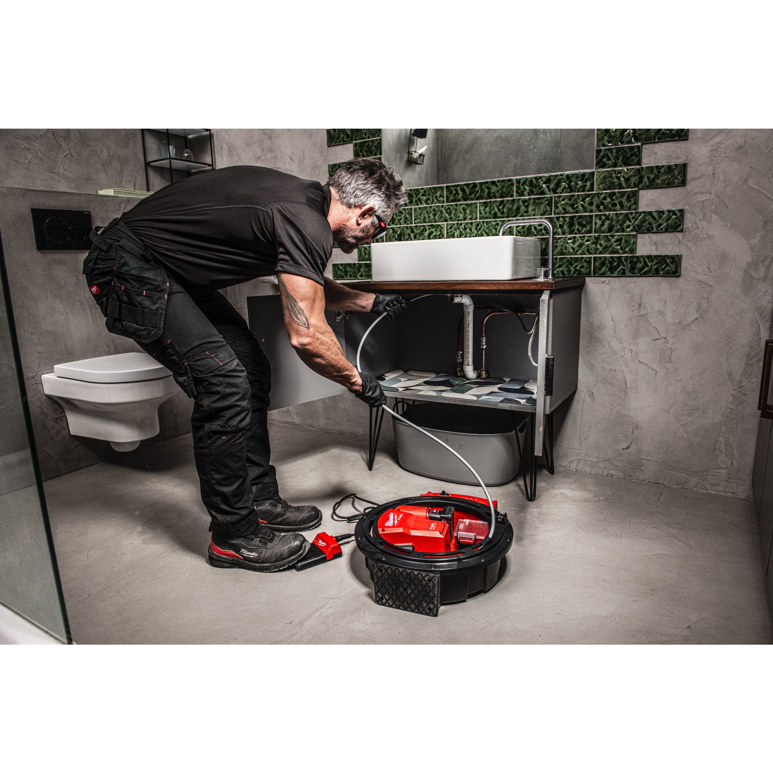 Déboucheur haute vitesse alimenté par batterie Nettoie les bouchons dans des tuyaux de 32mm (1 ¼″) – 50mm (2″) jusqu'à 10,5m de longueur Vitesse variable de 600 à 1900 tr/min pour un meilleur contrôle et nettoyage des parois du tuyau Flexible de 6mm revêt