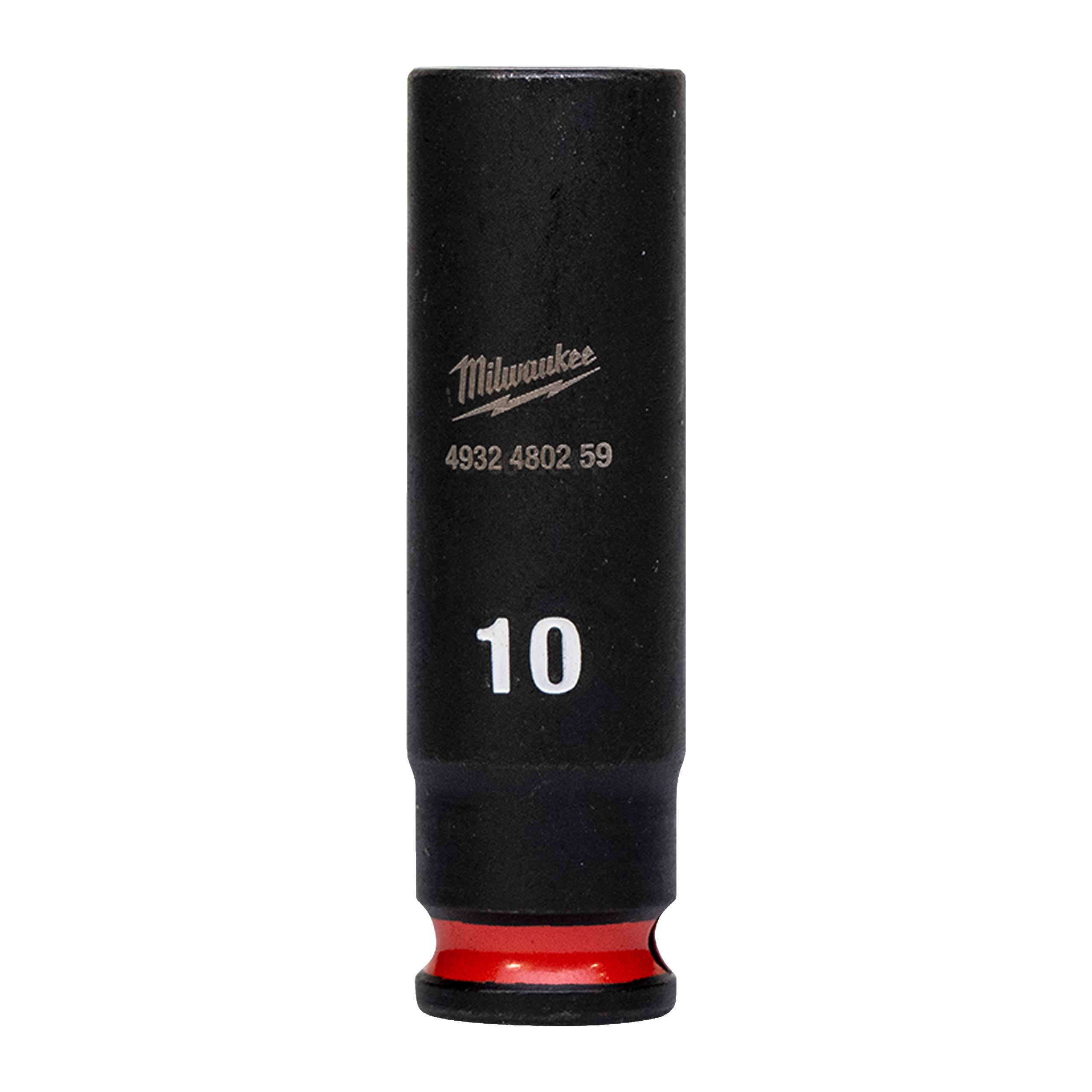 L'acier (Chrome-Mobybdène) SHOCKWAVE™ IMPACT DUTY est un alliage en acier de haute qualité qui fournit une force extrême et une grande durabilité. Meilleure adaptation grâce aux 6 points de fixation. Aucun glissement grâce à sa géométrie hexagonale pour protéger la forme de la douille et de l'écrou. Construction à parois affinées pour un meilleur accès. Marquage du diamètre estampée et rempli d'encre numéro de pièce gravé au laser. Double trou pour les associer avec les accessoires de sécurité