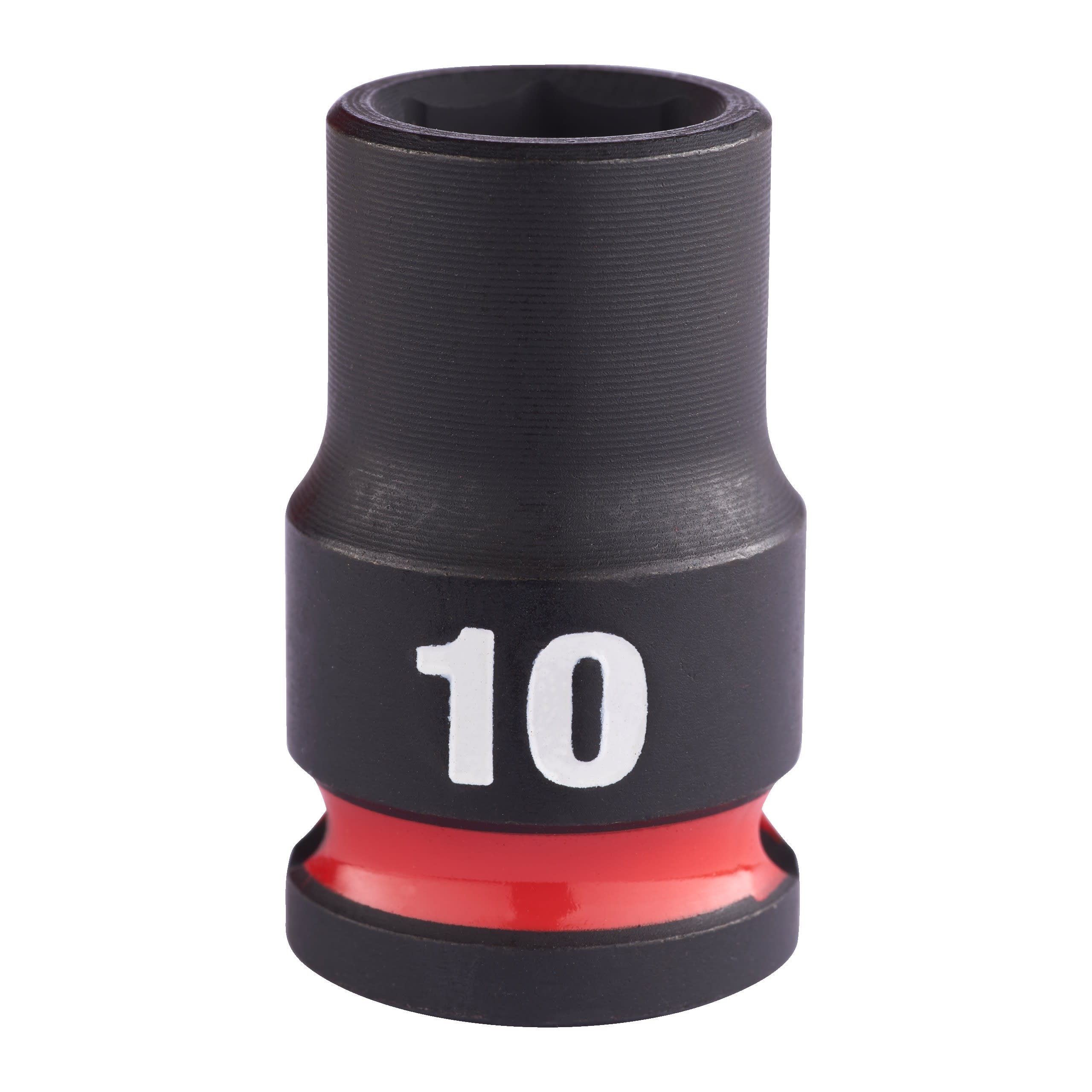L'acier (Chrome-Mobybdène) SHOCKWAVE™ IMPACT DUTY est un alliage en acier de haute qualité qui fournit une force extrême et une grande durabilité. Meilleure adaptation grâce aux 6 points de fixation. Aucun glissement grâce à sa géométrie hexagonale pour protéger la forme de la douille et de l'écrou. Construction à parois affinées pour un meilleur accès. Marquage du diamètre estampée et rempli d'encre numéro de pièce gravé au laser. Double trou pour les associer avec les accessoires de sécurité