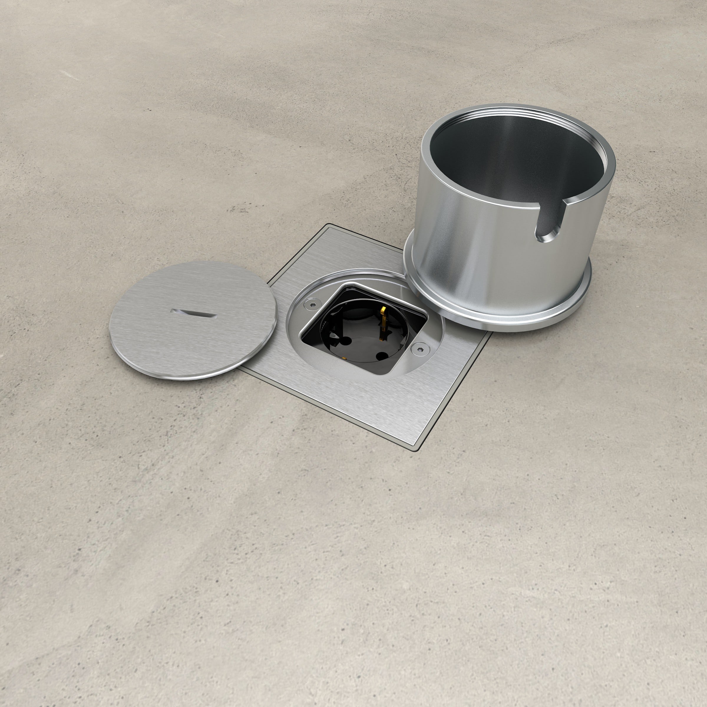 Accessoire pour prise de sol BUBOX - rehausse AQUASTOP Aluminium Champagne naturel. Protection et étanchéité des prises connectées. Fabriqué en Belgique