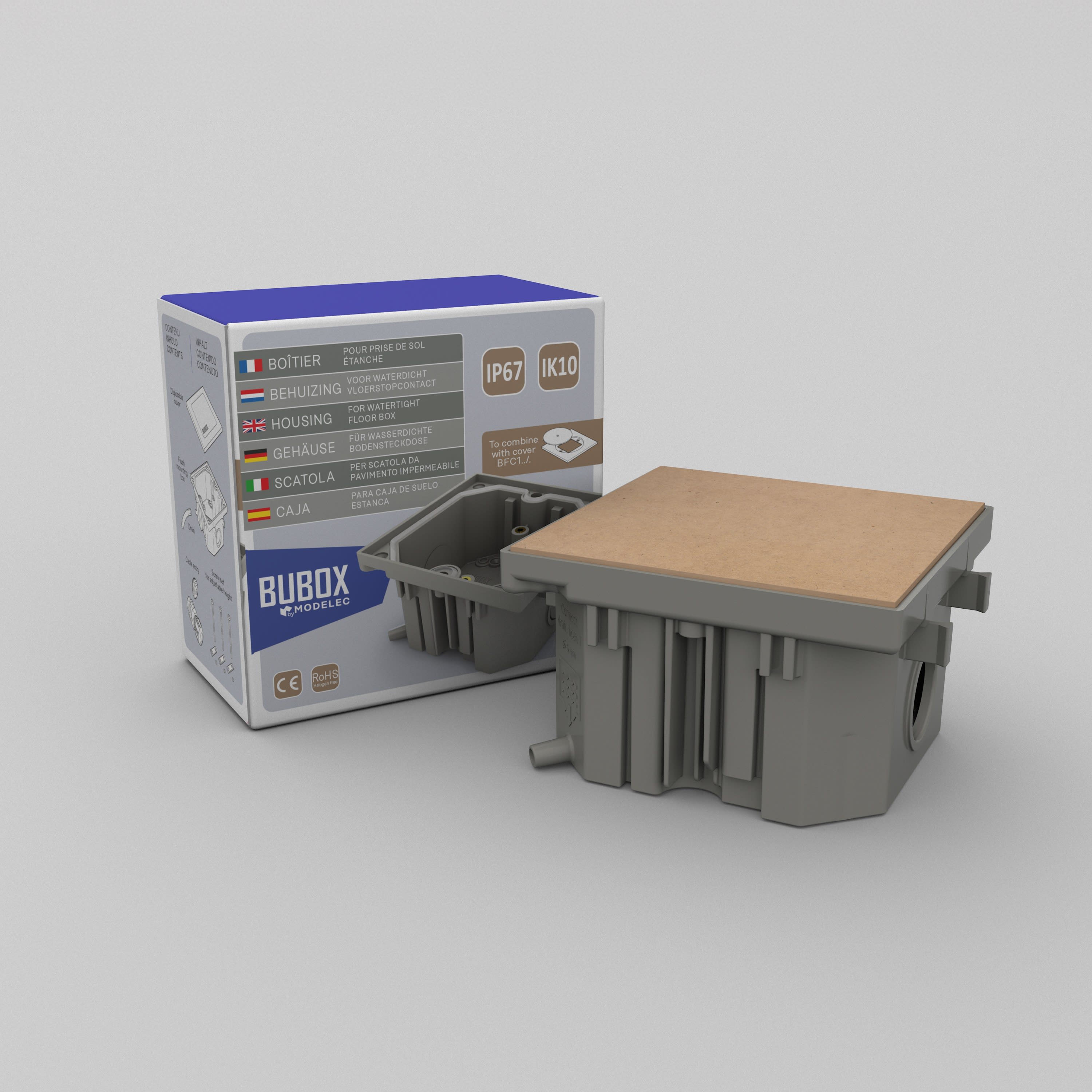 MODELEC - Boitier d'encastrement pour Prise de sol étanche BUBOX CLASSIC 100x100x59mmmm - BFC160