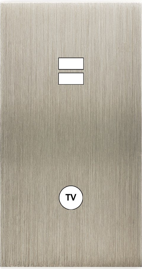Façade Confidence en laiton massif finition Acier Brossé double verticale ouverture pour chargeur double USB 1 TV