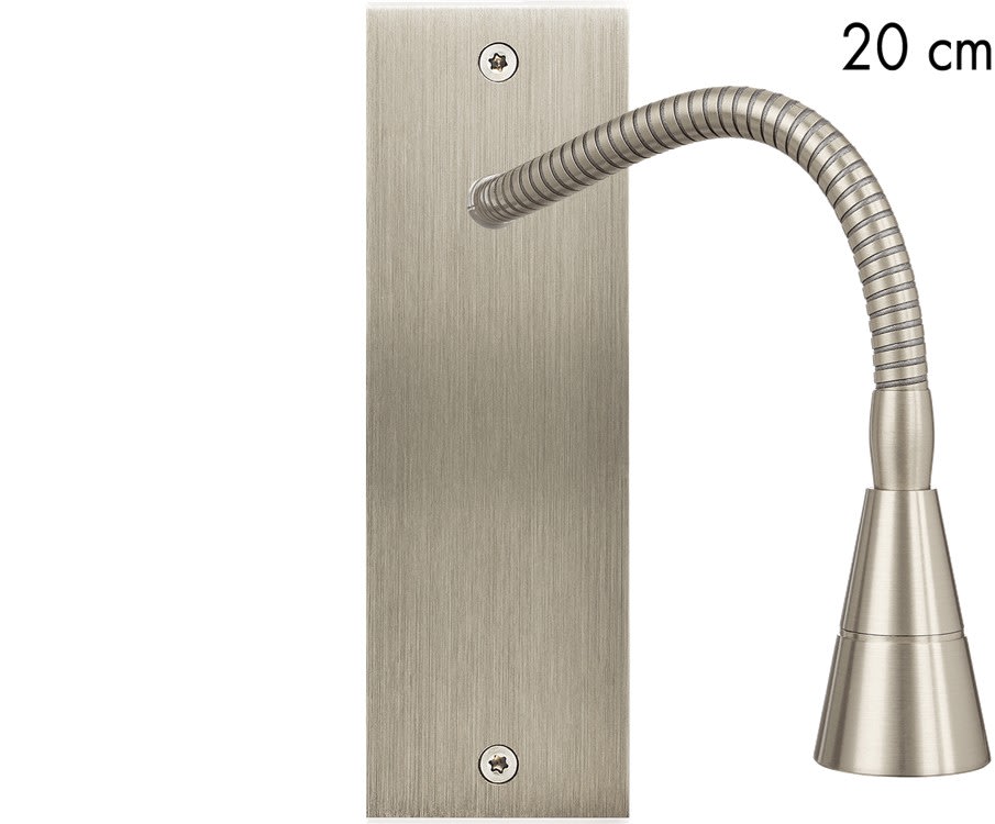 Façade Confidence en laiton massif finition Acier Brossé étroite longue liseuse flexible 20cm. Façade à vis. Dimensions 40x126x5mm. Fabriqué en France.