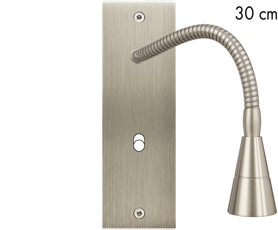 Façade Confidence en laiton massif finition Acier Brossé étroite longue liseuse flexible 30cm + 1 basculeur. Dimensions : 40x126x5mm, deux chanfreins biseautés. A associer à nos leviers en laiton massif. Fabriqué en France.