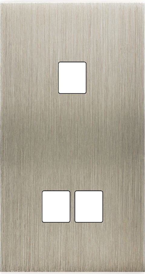 Façade Confidence en laiton massif finition Acier double verticale 1 MEDIA 2 MEDIA. Façade magnétique. Deux chanfreins biseautés. Dimensions 80x151x5mm. Fabriqué en France.