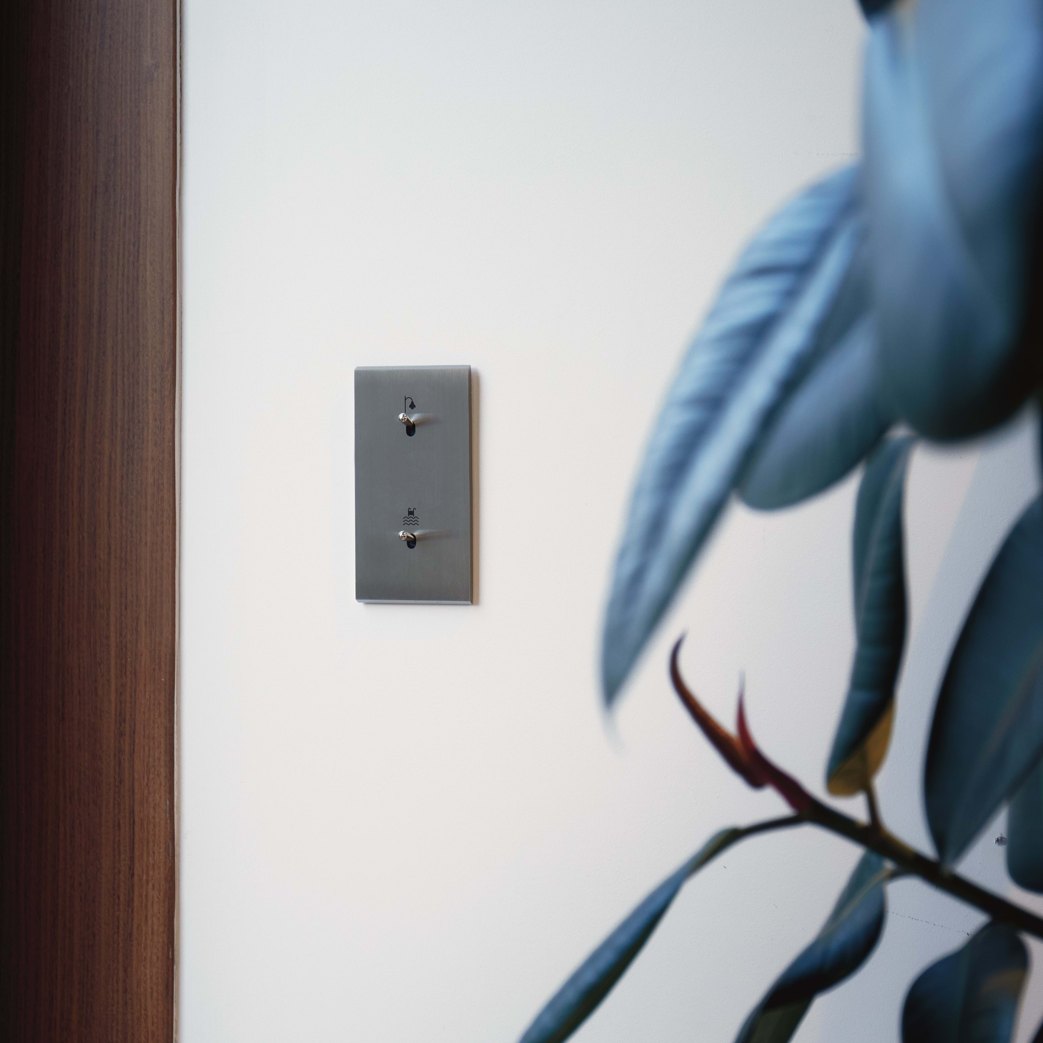 Laiton massif 5mm - 151x80mm, horizontal ou vertical - 12 finitions disponibles et plus de 50 fonctions - Montage sur boîtiers standards profondeur 50mm - Montage aimanté ou à vis