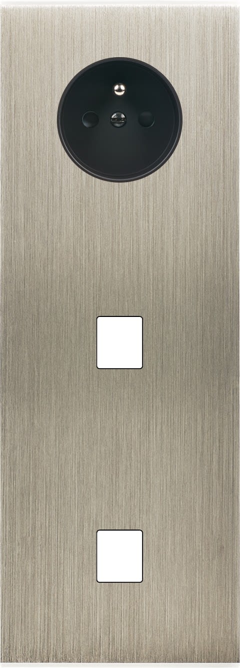 Façade Confidence en laiton massif finition Acier triple verticale prise 2P+T 1 MEDIA 1 MEDIA magnétique