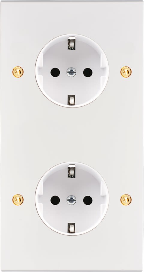 Façade Confidence en laiton massif finition Blanc Email double verticale 1 prise Schuko 1 prise Schuko à vis