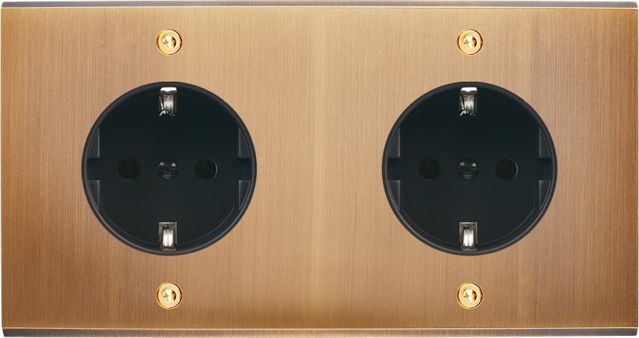 Laiton massif 5mm - 151x80mm, horizontal ou vertical - 12 finitions disponibles et plus de 50 fonctions - Montage sur boîtiers standards profondeur 50mm - Montage aimanté ou à vis