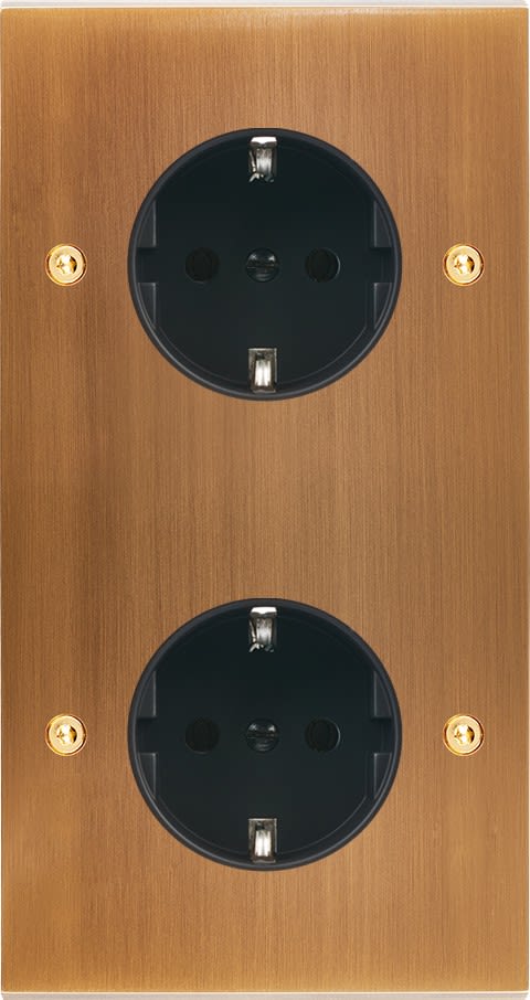 Façade Confidence en laiton massif finition à visieux Bronze double verticale 1 prise Schuko 1 prise Schuko à vis