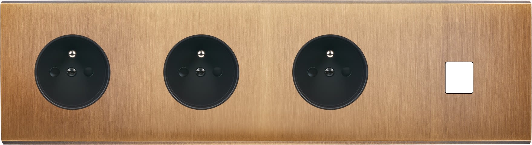 Façade Confidence en laiton massif finition Bronze quadruple horizontale prise 2P+T prise 2P+T prise 2P+T 1 MEDIA
