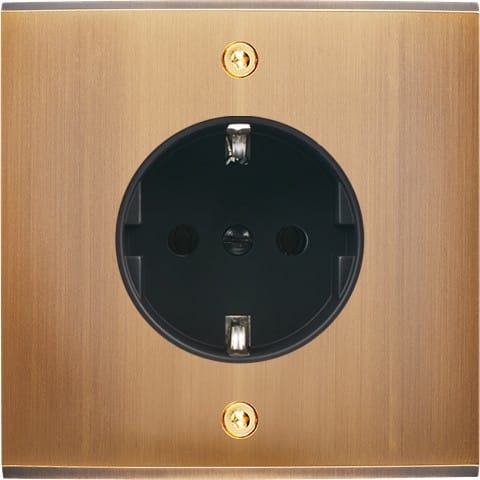 Façade Confidence en laiton massif finitionà visieux Bronze simple 1 prise Schuko à vis