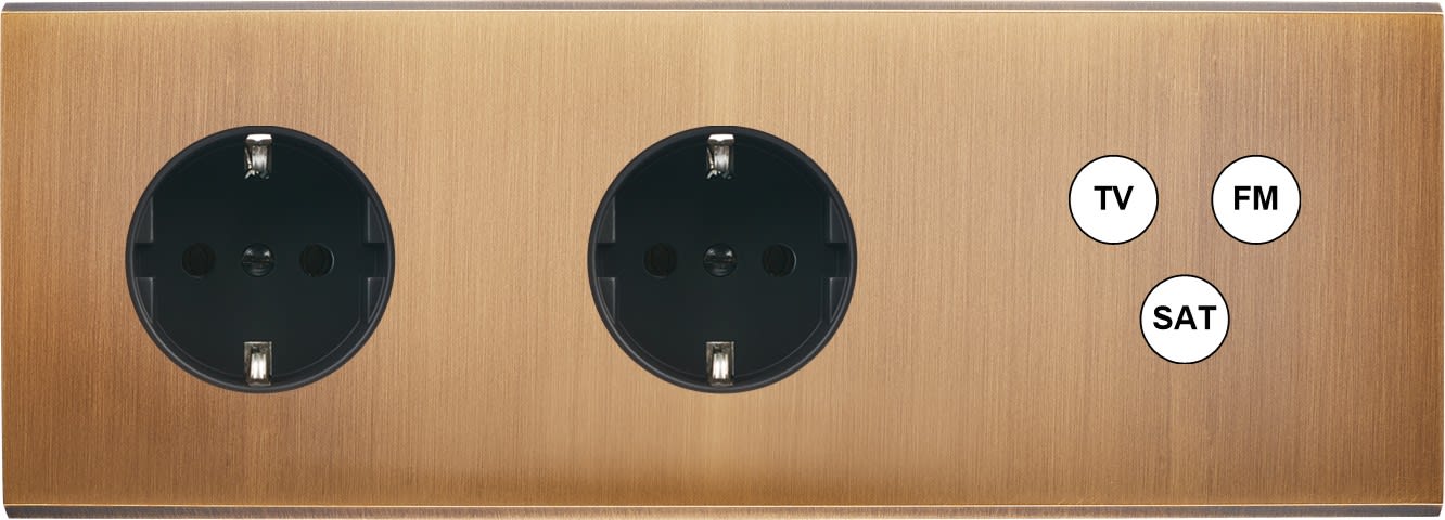 Façade Confidence en laiton massif finitionà visieux Bronze triple horizontale 1 prise Schuko 1 prise Schuko TVFMSAT