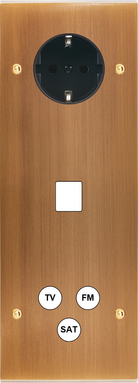 Laiton massif 5mm - Façade format triple vertical 80x222mm - 12 finitions disponibles et plus de 50 fonctions - Montage sur boîtiers standards profondeur 50mm - Façade à vis - Compatible avec les mécanismes MODELEC renforcés ou standards à connexion automatique