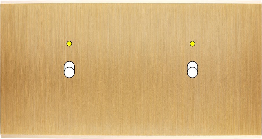 Façade Confidence en laiton massif finition Brossé double horizontale 1 basculeur+LED 1 basculeur+LED magnétique. Dimensions : 151x80x5mm, deux chanfreins biseautés. A associer à nos leviers en laiton massif. Fabriqué en France.