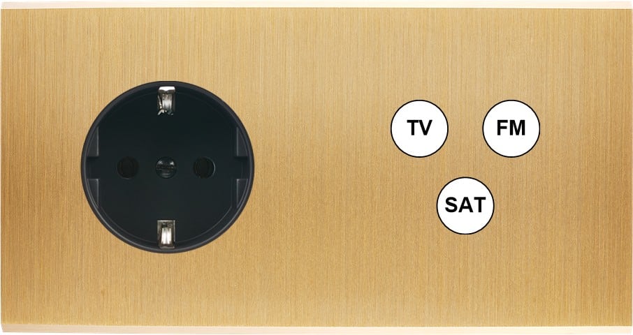 Façade Confidence en laiton massif finition Brossé double horizontale 1 prise Schuko TVFMSAT