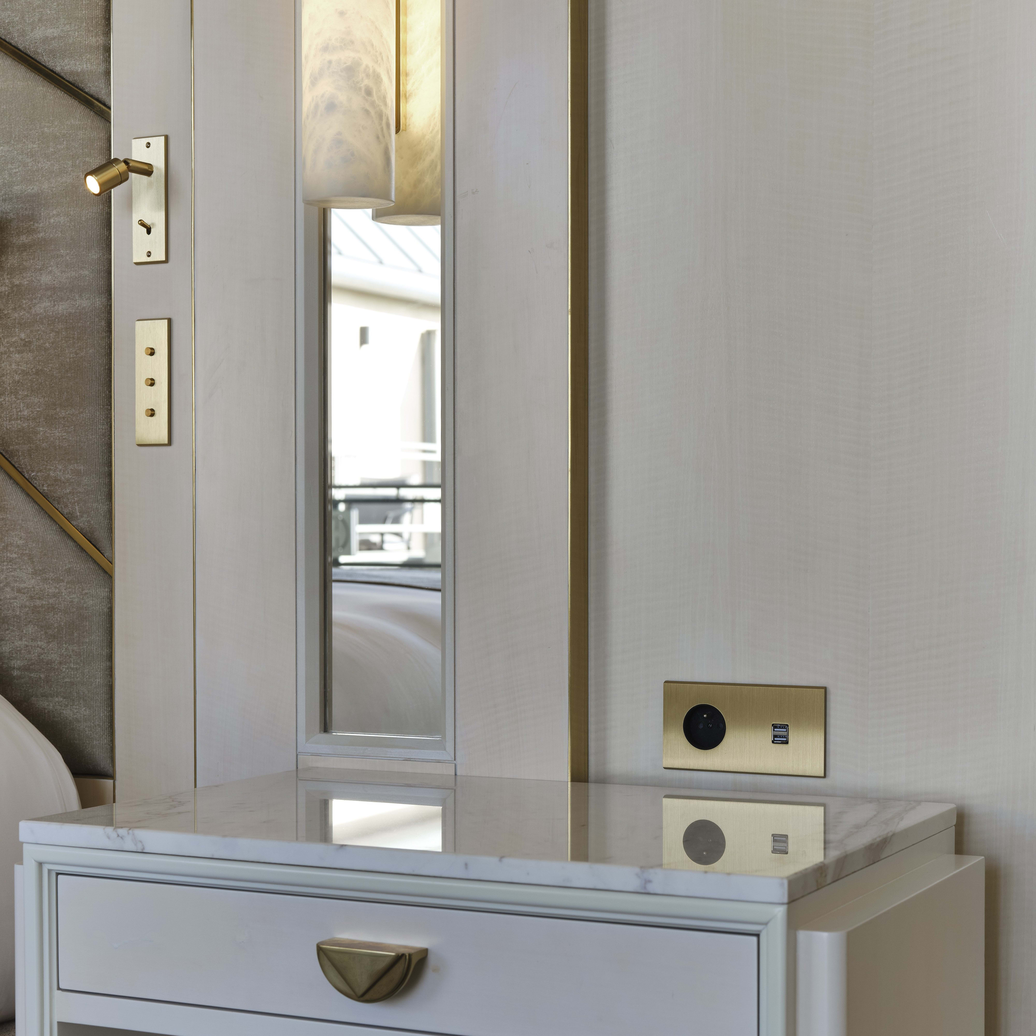 La collection de façades d'interrupteurs et prises Confidence laisse parler la matière avec élégance. Ses formes épurées et le détail de ses finitions soignées en font un incontournable pour vos projets résidentiels, hôteliers ou tertiaire.En laiton massif, disponible en 12 finitions. Chaque façade existe sans vis apparentes (aimantée) ou avec vis (Torx). Disponible en plusieurs formats, fonctions et finitions, à décliner à l'infini. La collection Confidence de MODELEC est fabriquée en France.