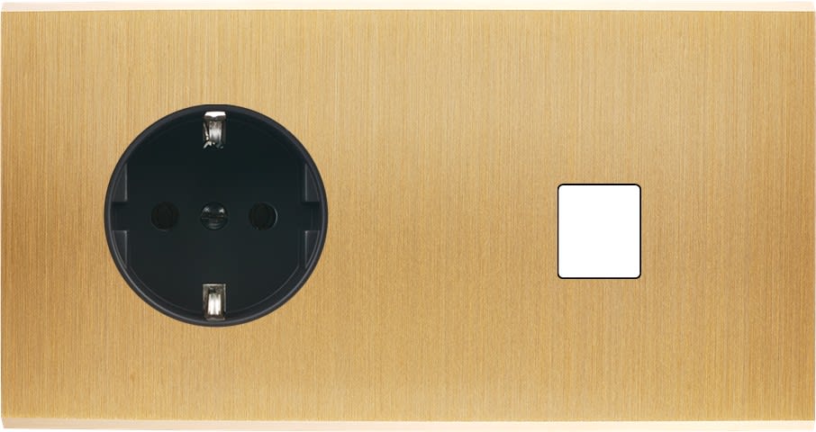 Façade Confidence en laiton massif finition Brossé double horizontale 1 prise Schuko 1 MEDIA