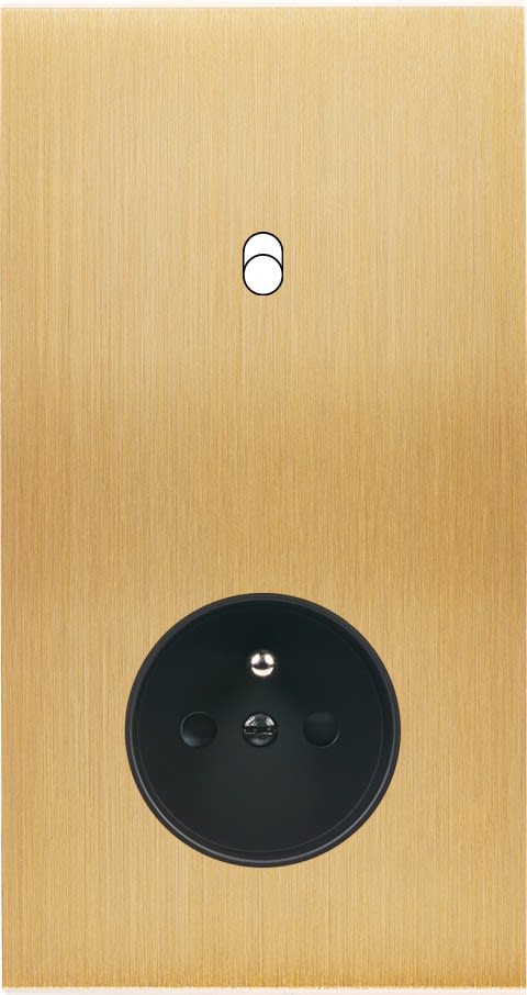 Façade Confidence en laiton massif finition Brossé double verticale 1 basculeur prise 2P+T. Façade magnétique. Dimensions : 151x80x5mm, deux chanfreins biseautés. A associer à nos mécanismes. Fabriqué en France.
