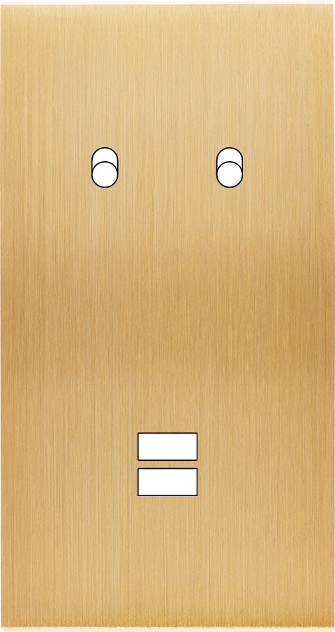 Façade Confidence en laiton massif finition Brossé double verticale 2 basculeurs ouverture pour chargeur double USB. Dimensions : 151x80x5mm, deux chanfreins biseautés. A associer à nos mécanismes. Fabriqué en France.
