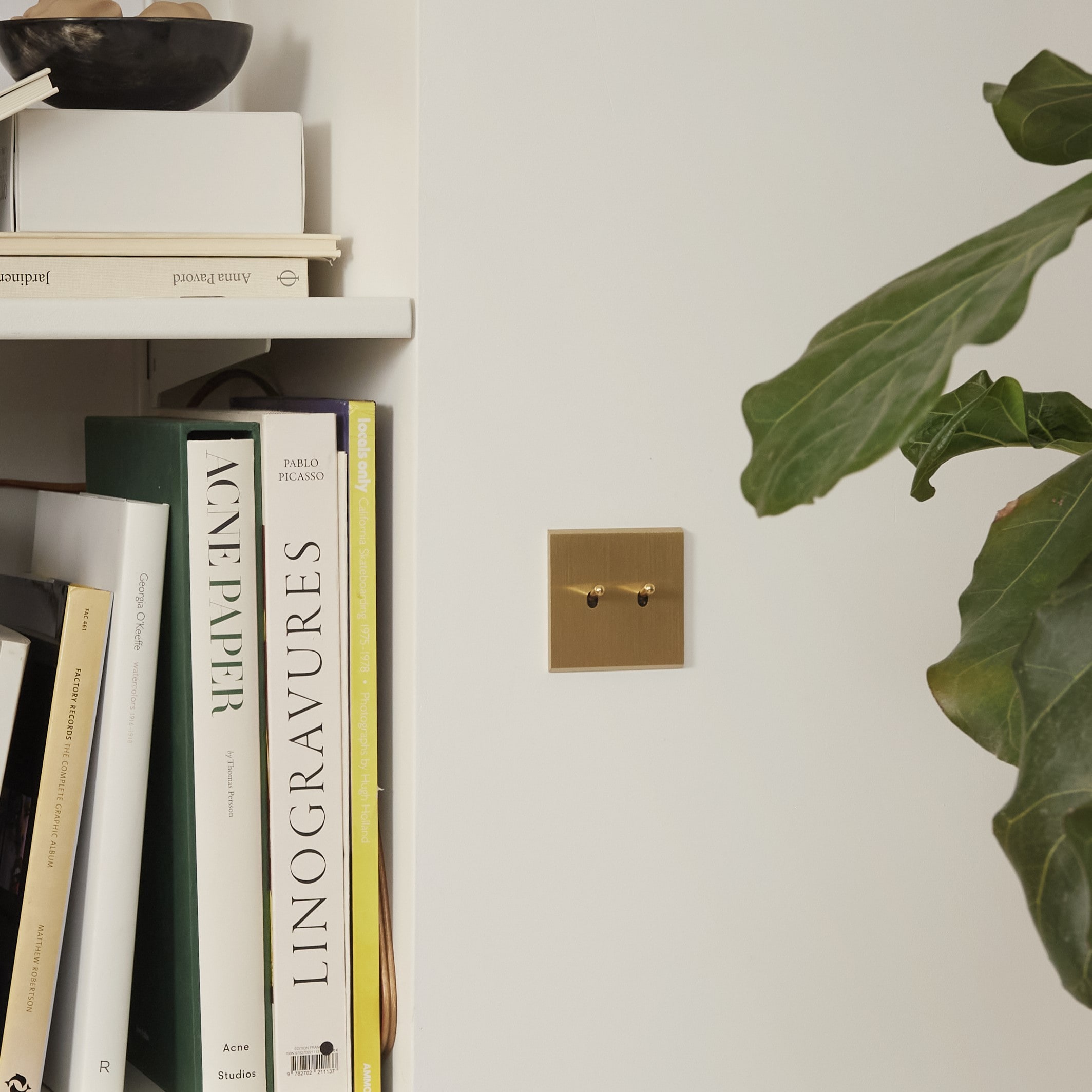 Laiton massif 5mm - 80x80mm - 12 finitions disponibles et plus de 50 fonctions - Montage sur boîtiers standards profondeur 50mm - Montage aimanté ou à vis