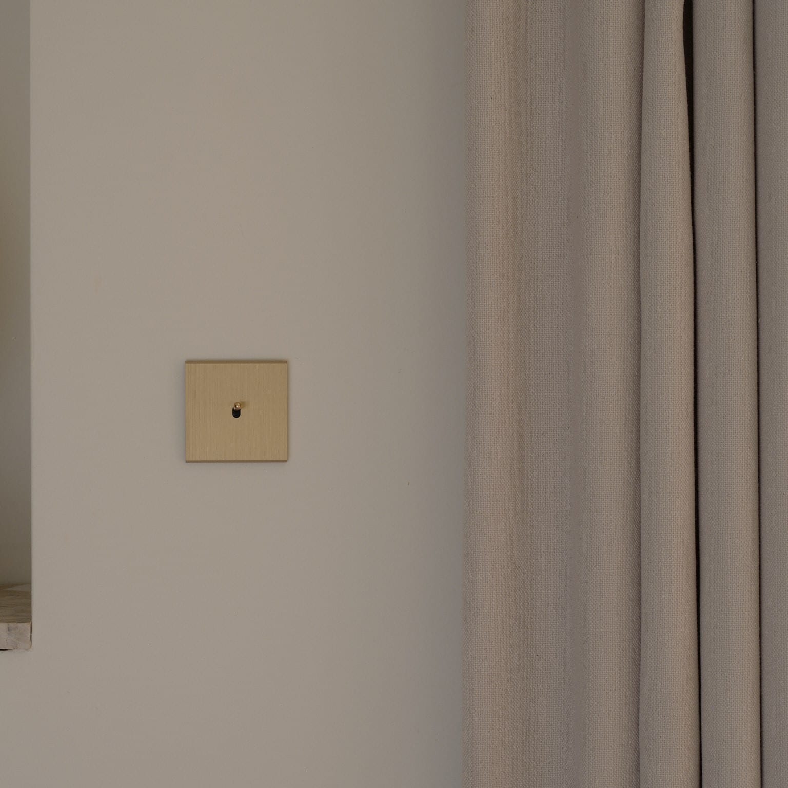 Façade Confidence en laiton massif finition Brossé simple 1 basculeur. Façade magnétique. Dimensions : 80x80x5mm, deux chanfreins biseautés. Fabriqué en France.