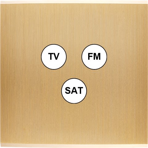 Façade Confidence en laiton massif finition Brossé simple TV-FM-SAT. Façade magnétique. Deux chanfreins biseautés. Dimensions 80x80x5mm. Fabriqué en France.