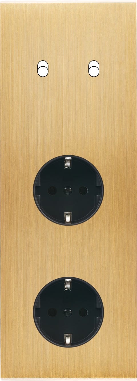 Façade Confidence en laiton massif finition Brossé triple verticale 2 Basculeurs 1 prise Schuko 1 prise Schuko. Dimensions : 80x222x5mm, deux chanfreins biseautés. A associer à nos leviers en laiton massif. Fabriqué en France.