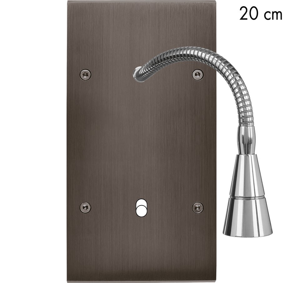 Laiton massif 5mm - 80x151mm - Montage sur boîtiers d'encastrement standards profondeur 50mm - Façade à vis - Compatible avec les mécanismes renforcés MODELEC - Transformateur 220-12V inclus - LED Blanc chaud 2700K - Consommation LED: 2 Watts - 140/170 Lumens