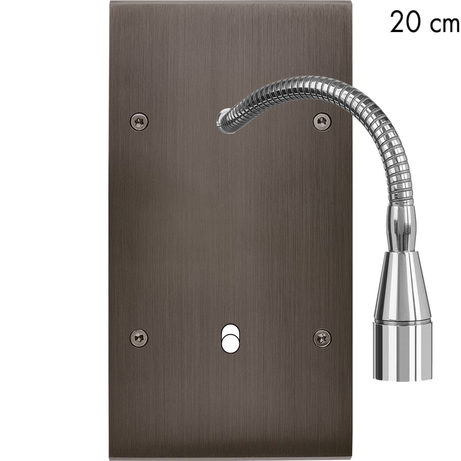 Laiton massif 5mm - 80x151mm - Montage sur boîtiers d'encastrement standards profondeur 50mm - Compatible avec les mécanismes renforcés MODELEC - Transformateur 220-12V inclus - LED Blanc chaud 2700K - Consommation LED: 2 Watts - 140/170 Lumens